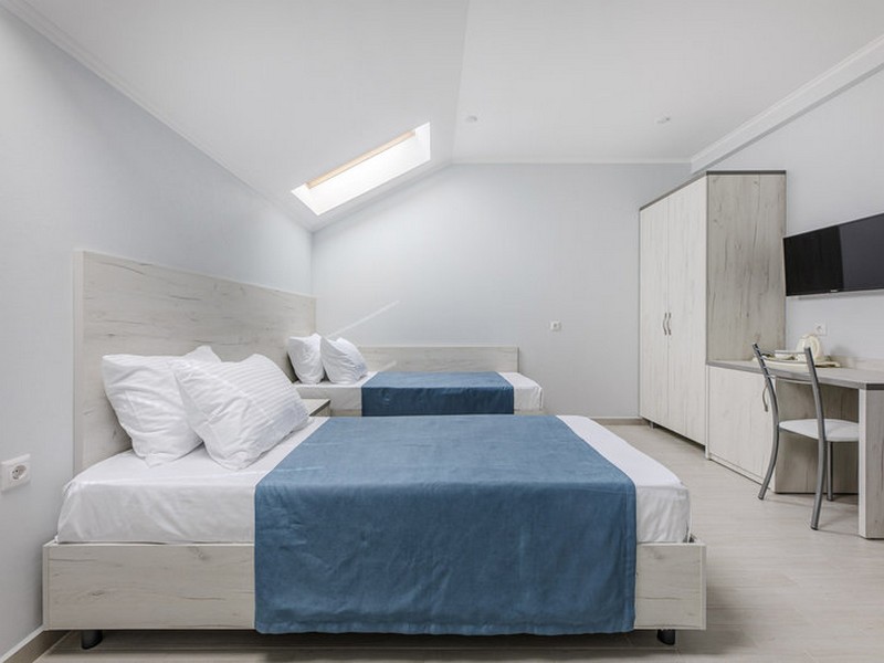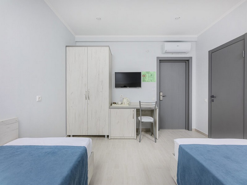 | Мебель: | односпальные кровати, шкаф, стулья, прикроватные тумбочки, стол, вешалка, зеркало |